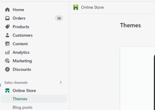 In the “Sales channels” section of the “Online Store” menu, select the “Themes” submenu.