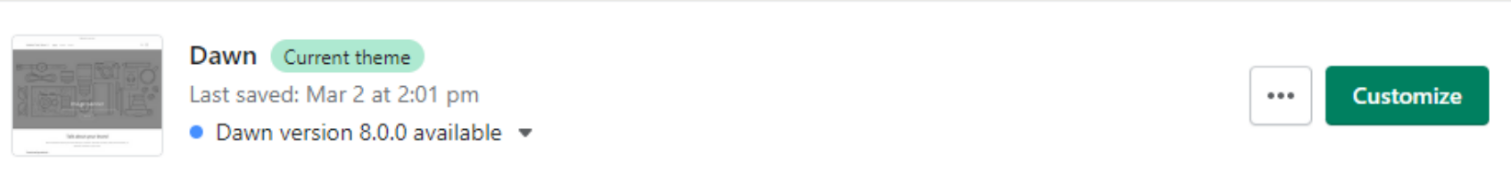 2. Navigate to the theme your online store uses and click the “Customize“ button